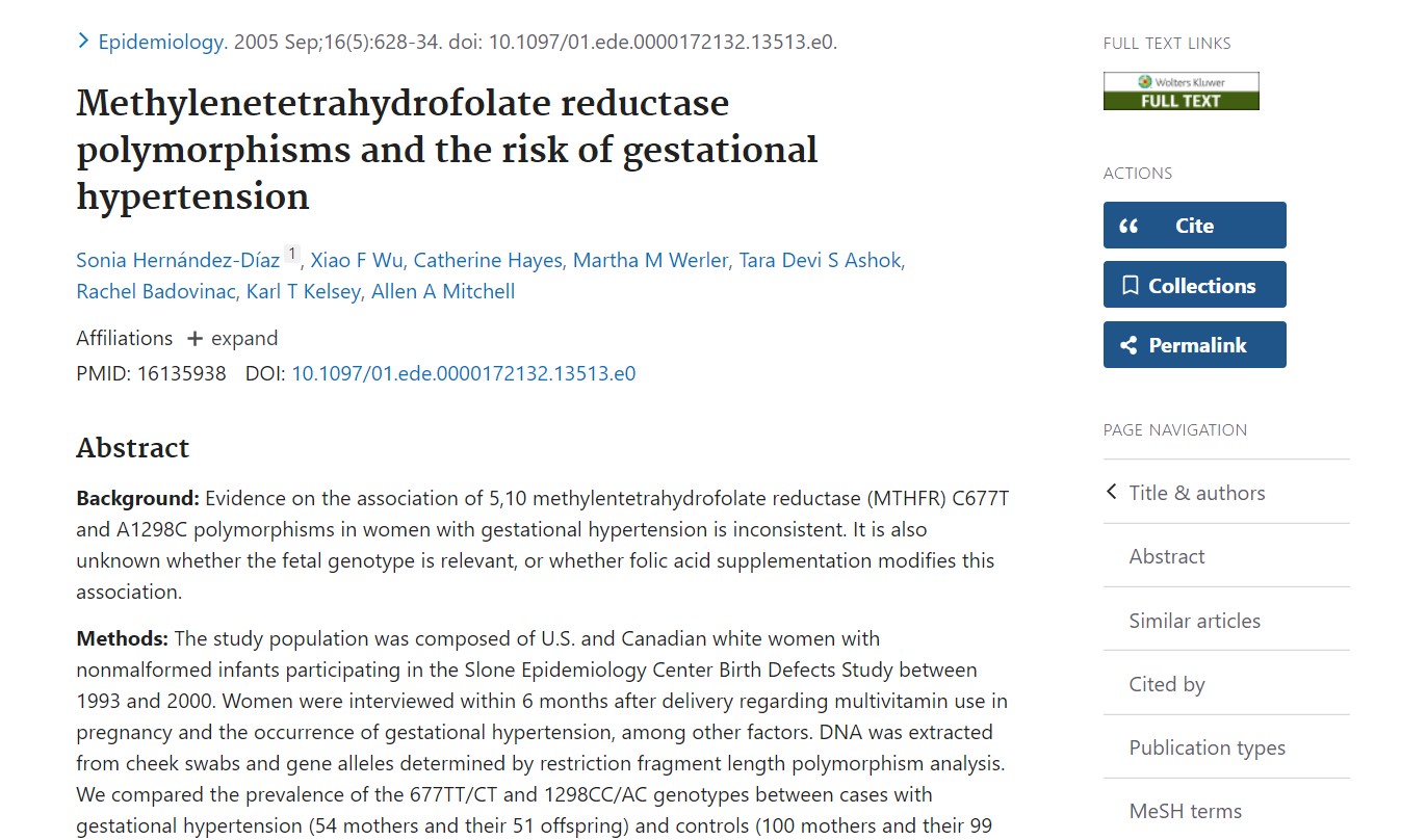 Hayes C, et al.Metilentetrahidrofolato Erreduktasa Polimorfismoak eta
