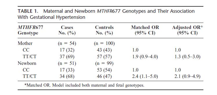MTHFR genea C677T posizioan (folatoen metabolismoaren gakoa) nabarmen handitzen da