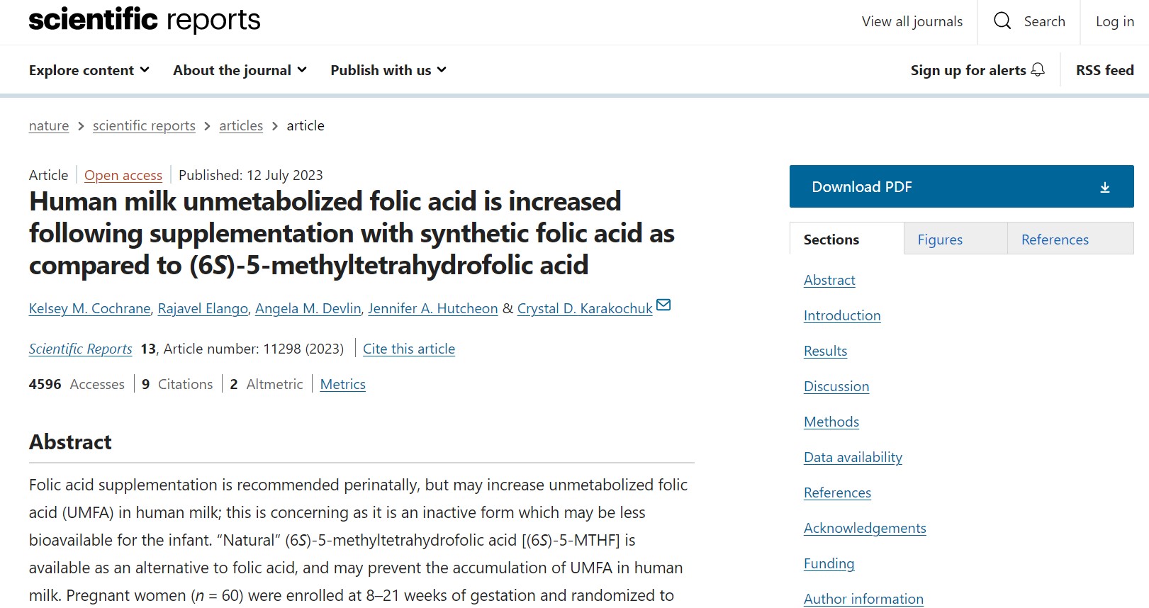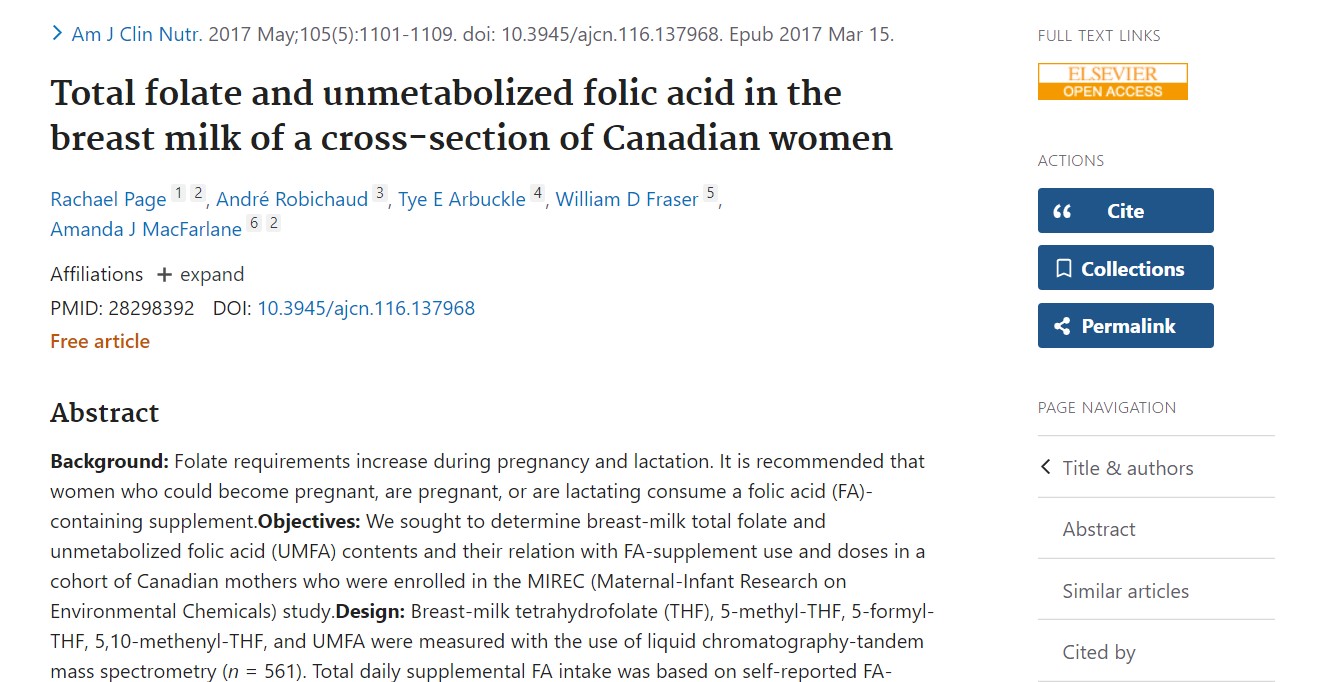 Orria R et al. Folato osoa eta metabolizatu gabeko azido folikoa Kanadako emakumeen bularreko esnean. Am J Clin Nutr 2017;105:1101-9.